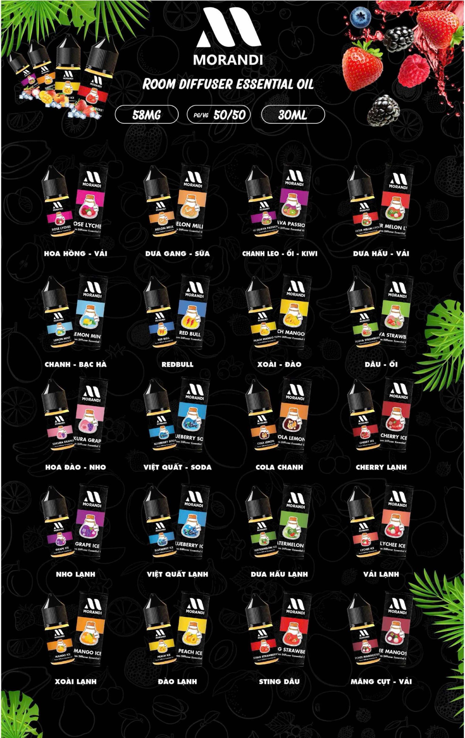 Tinh dầu morandi 30ml/58mg đáp full vị